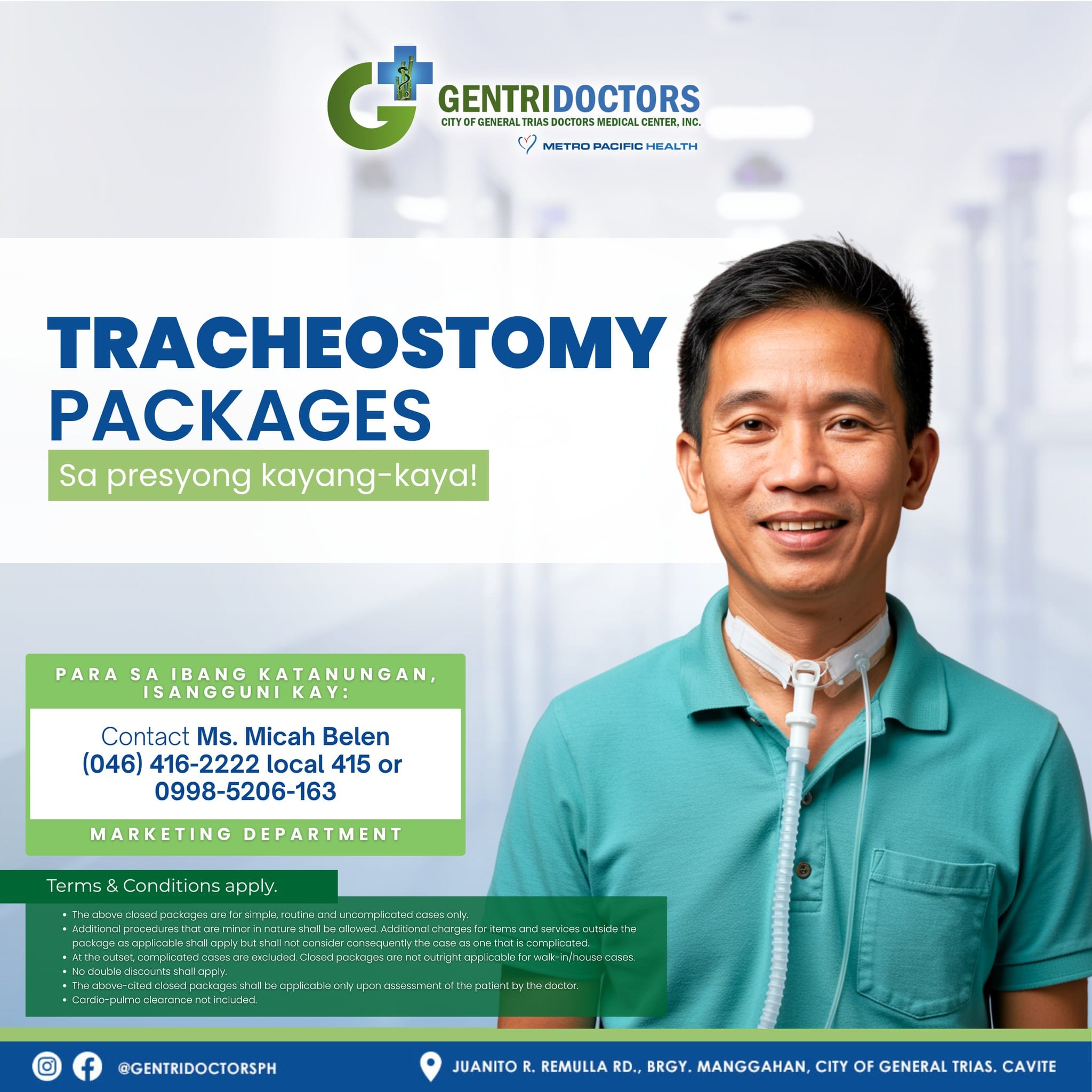 As part of Metro Pacific Health’s growing network of hospitals across the country, City of General Trias Doctors Medical Center, Inc. proudly joins a trusted family of premier healthcare institutions. On 7 November 2024, Metro Pacific Health Corporation completed its investment in our hospital—marking its 27th hospital nationwide and second in Cavite—a testament to MPH’s continued commitment to expanding quality healthcare to more communities.